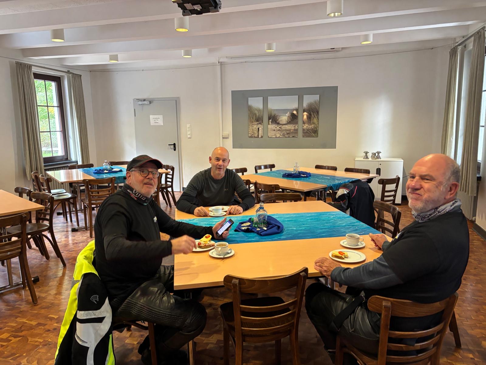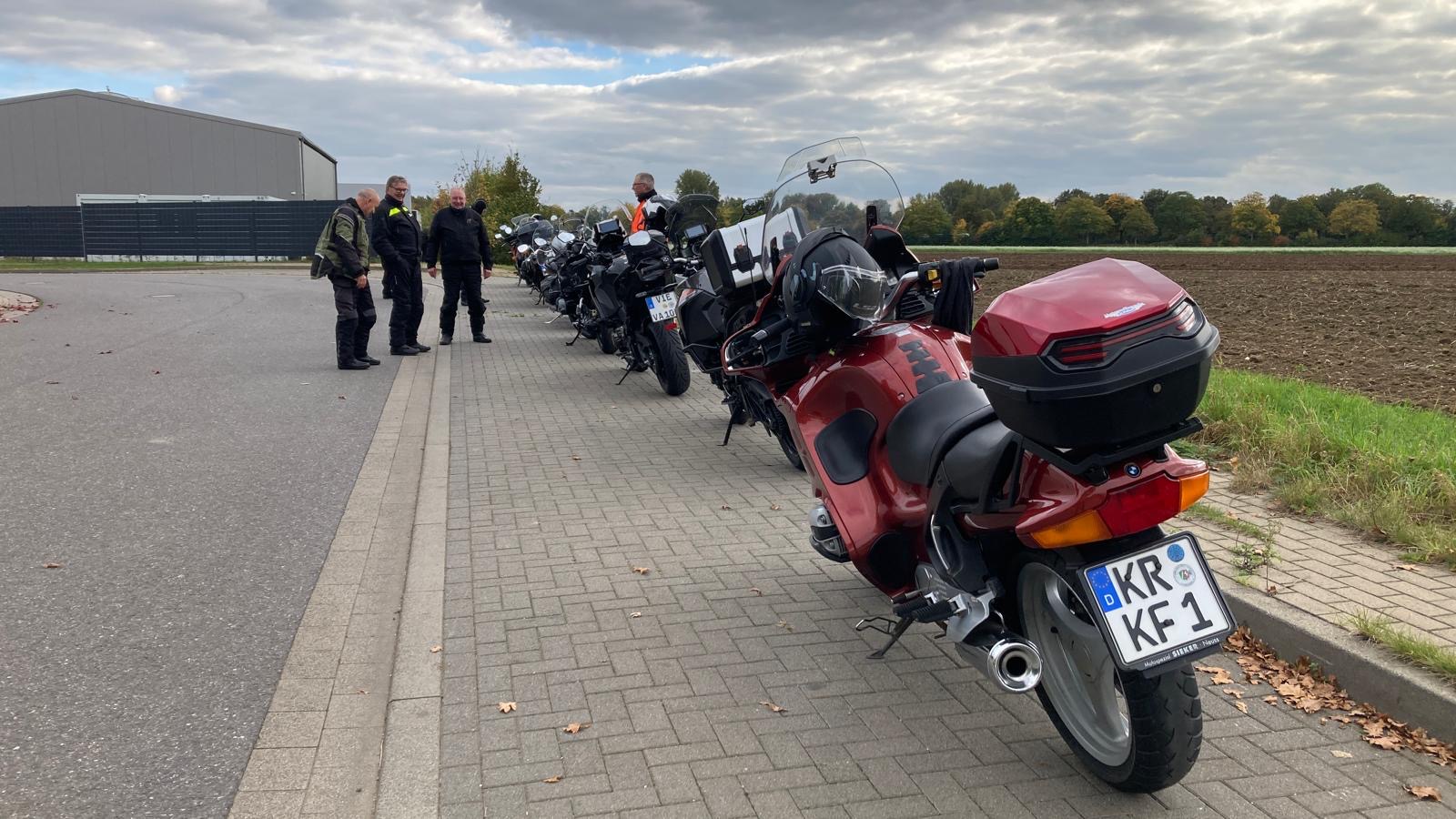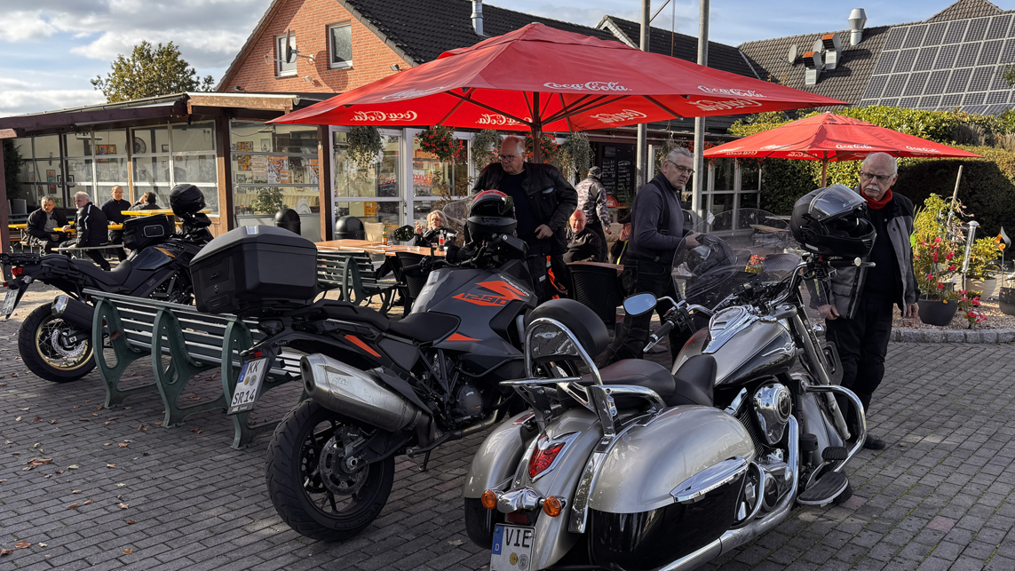 Aufgrund unsicherer Wettervorhersagen wurde von unserem Präsidenten kurzfristig zum Saisonauftakt am Ostersamstag eingeladen. Unser Präses staunte nicht schlecht – hatten sich doch 19 Bikerinnen und Biker eingefunden, um bei bestem Motorradwetter die Saison offiziell einzuläuten. Es wurden zwei Gruppen gebildet, die zum einem von Kalle 3 und zum anderen von Menne angeführt wurden. Ziel für die Gruppe 1 war die Xantener Nordsee und Gruppe 2 fuhr zur Xantener Rheinfähre. Auf leicht unterschiedlichen Routen ging es über die „Hausstrecke“ zum Ziel.